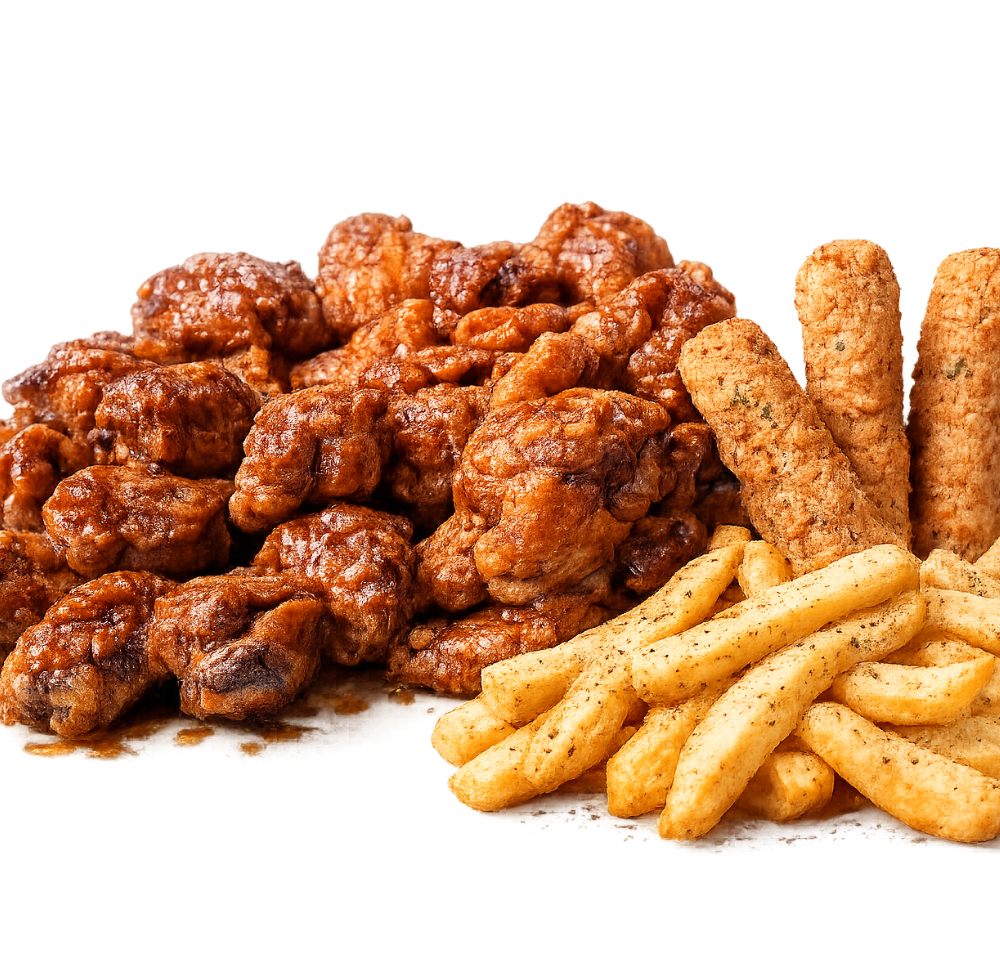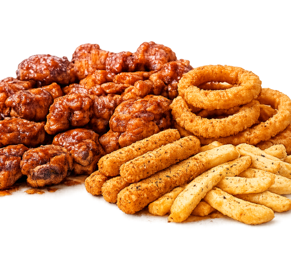 Disfruta nuestras famosas alitas preparadas al momento, disponibles en una gran variedad de salsas y niveles de picante, desde sabores clásicos hasta recetas explosivas. También contamos con una selección irresistible de boneless, costillas, hamburguesas, papas cargadas, nachos, y entradas perfectas para abrir el apetito.