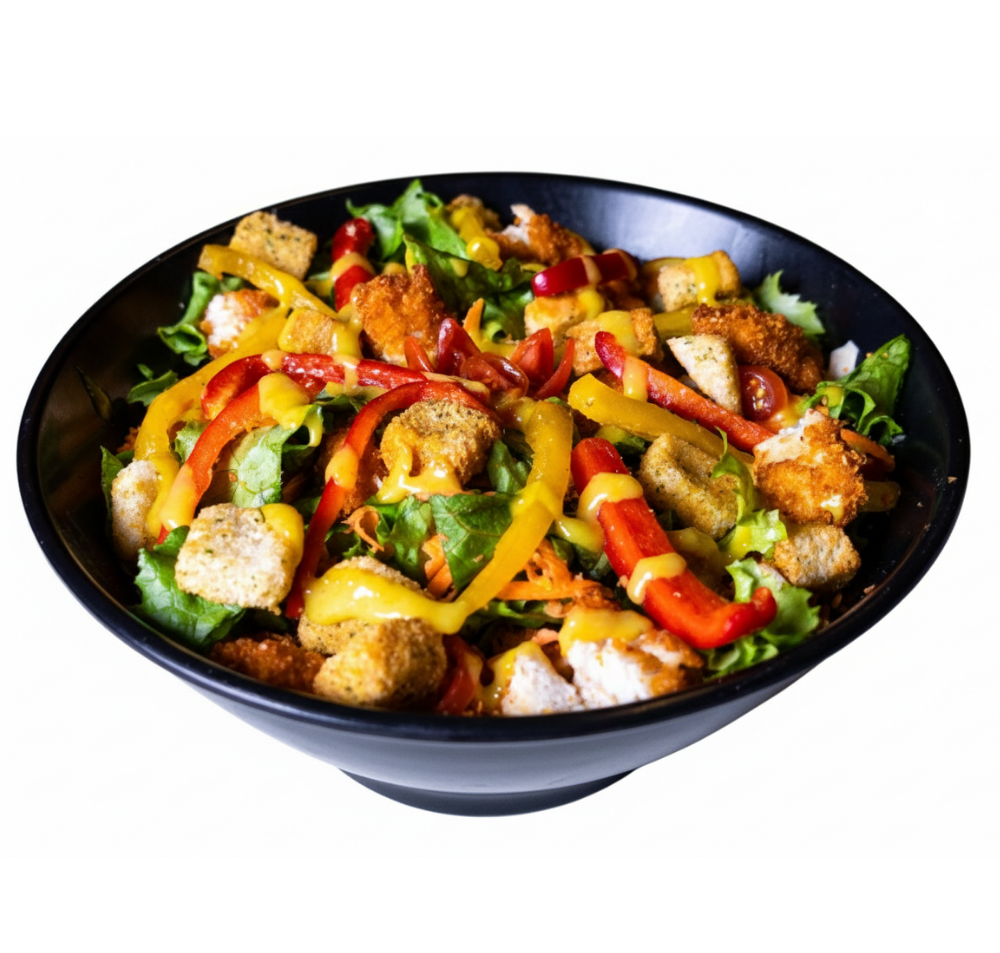 Fresco mix de hojas con pollo a la parrilla y aderezo Rebel. Balance perfecto sin perder sabor.