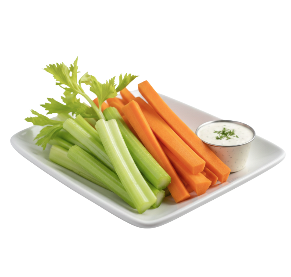 Frescos, crujientes y perfectos para balancear el antojo. Disfruta una deliciosa combinación de zanahoria y apio en bastones, recién cortados y listos para botanear, acompañados de un dip cremoso lleno de sabor que los hace simplemente irresistibles