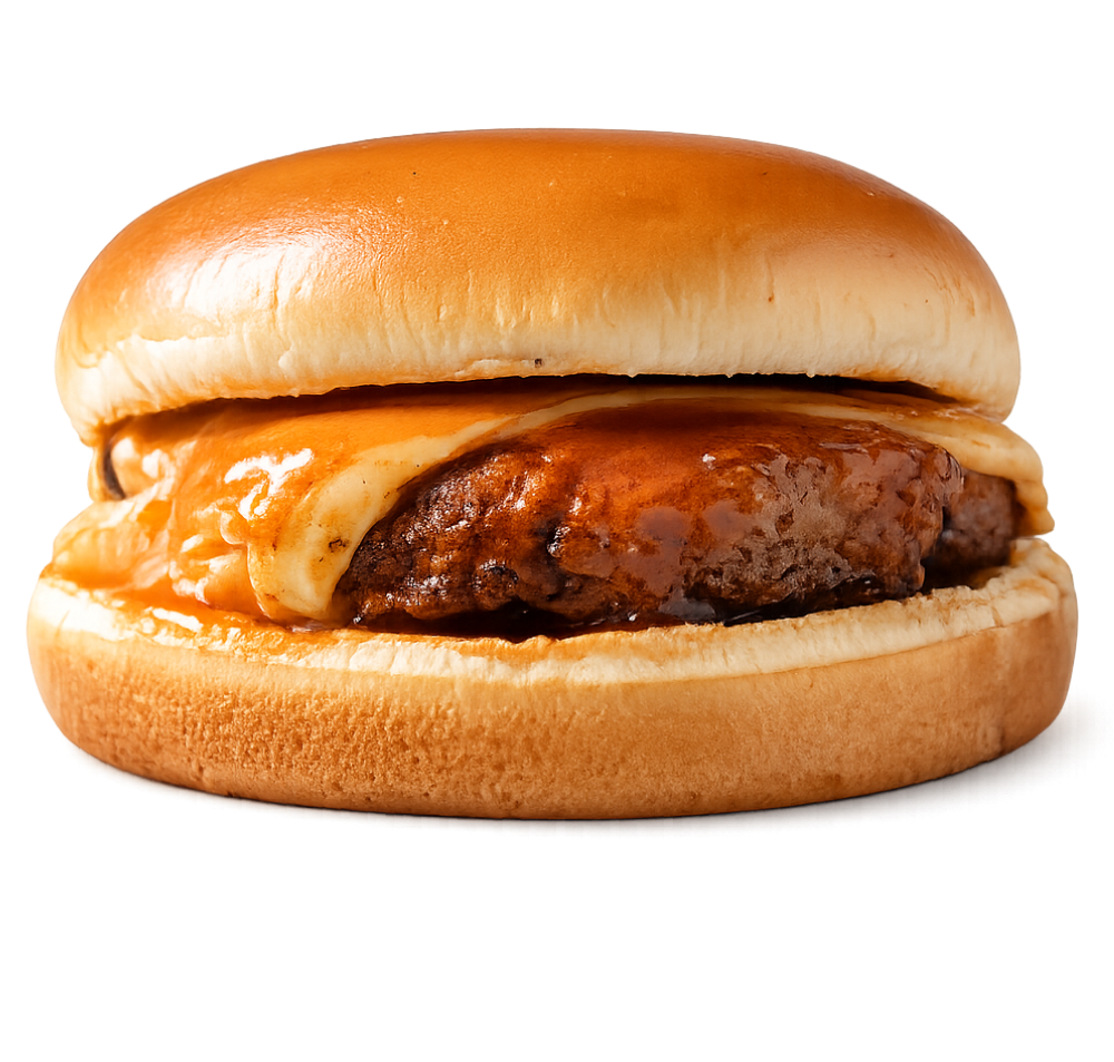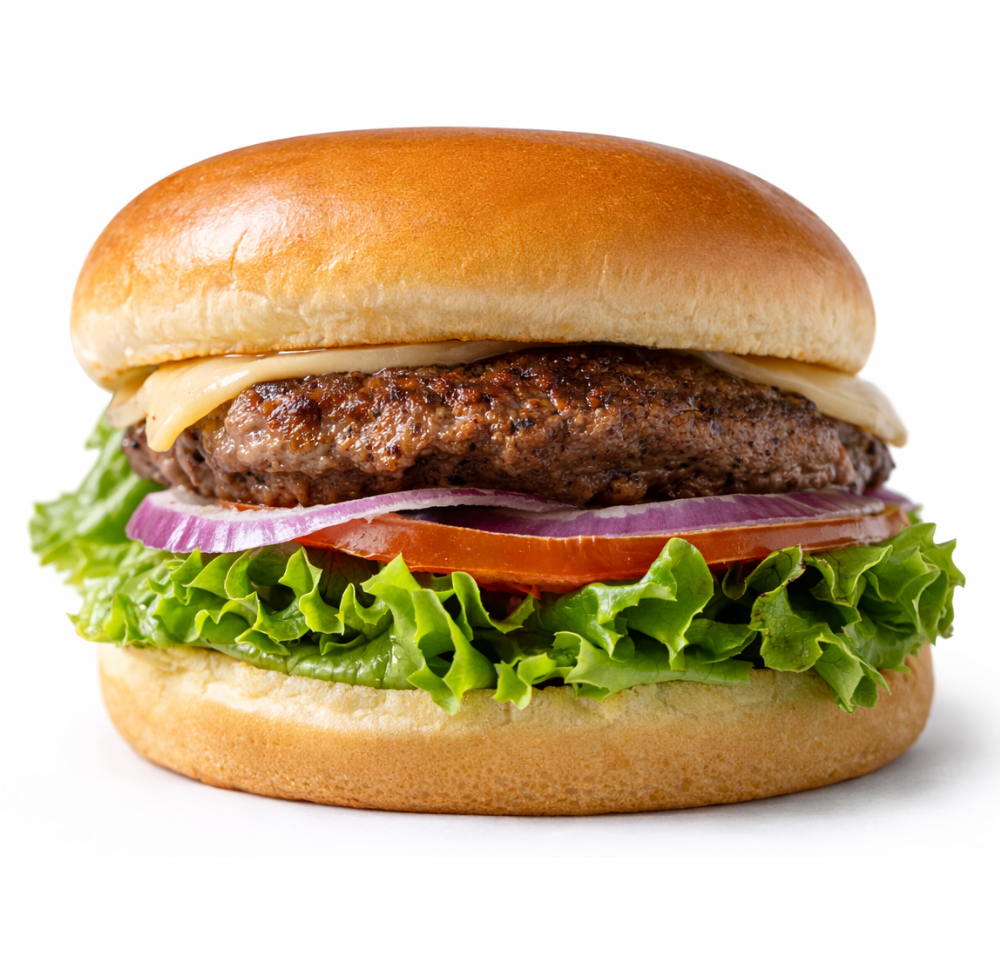 Sabrosos 150g de carne de res con queso, una refrescante cama de lechuga, jitomate y cebolla en pan suave esta es La clásica que pinta bien en cada mordida.
