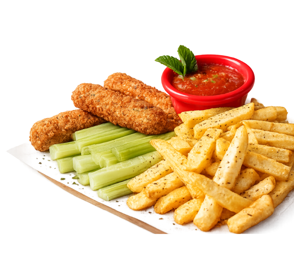 Selección práctica y rendidora de dedos de queso, jalapeños, vegetales, 1 orden de papas y salsa italiana. Ideal para empezar entre todos.